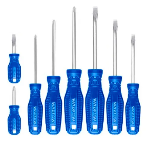 Descubre el Set de 8 Destornilladores Paleta/Phillips de Wadfow, un conjunto esencial para cualquier profesional o aficionado al bricolaje. Fabricados con material 40cr, garantizan durabilidad y resistencia en cada uso. Su diseño incluye un mango redondo de plástico, que ofrece un agarre cómodo y ergonómico, facilitando el trabajo prolongado sin causar fatiga en la mano. Este set incluye una variedad de tamaños de puntas: SL6.5*38, PH2*38, SL3*75, SL5.5*75, SL6.5*100, PH0*75, PH1*75 y PH2*100, brindando flexibilidad para diversas aplicaciones. Las puntas son no intercambiables, pero el set incluye la conveniente característica de punta magnética para asegurar tornillos de manera más efectiva. Perfecto para quienes buscan calidad y funcionalidad, este set es una adición valiosa a tu kit de herramientas. ¡No te quedes sin él!